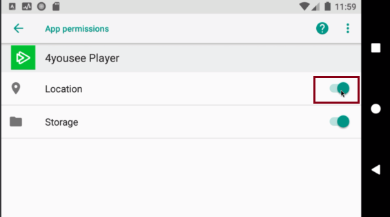 Al abrir el Player Android por primera vez después de la instalación, el sistema operativo solicitará permiso para acceder a la ubicación del dispositivo.