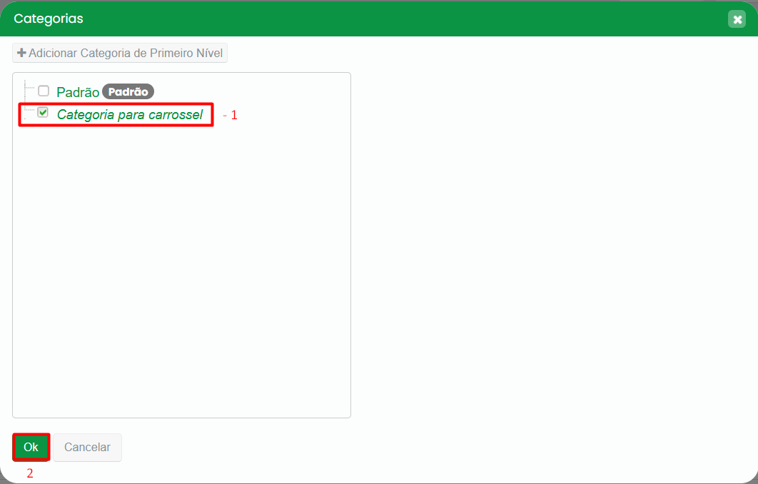 A categoria será vinculada como carrossel conforme os filtros e opções escolhidas.
