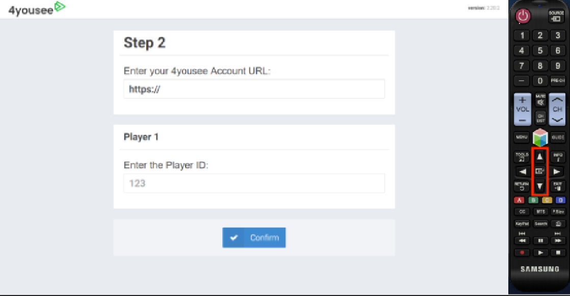 Para instalar, basta apertar a tecla Home no controle remoto e acessar o item URL Launcher ou Iniciador URL. Alguns monitores vem com a opção MagicInfo ao invés de URL Launcher e neste caso você deve efetuar a troca através das configurações. Para utilizar a função URL Launcher ou Iniciador URL, defina Reproduzir através de para Iniciador URL em Sistema. (MENU → Sistema → Reproduzir através de → Iniciador URL).