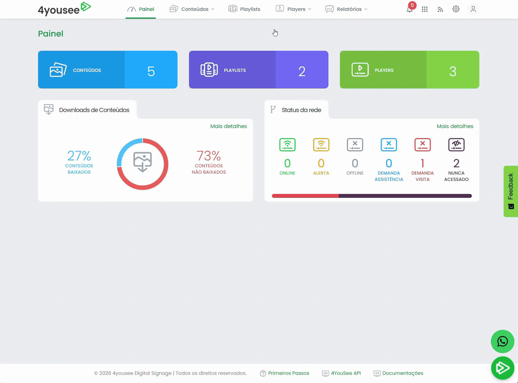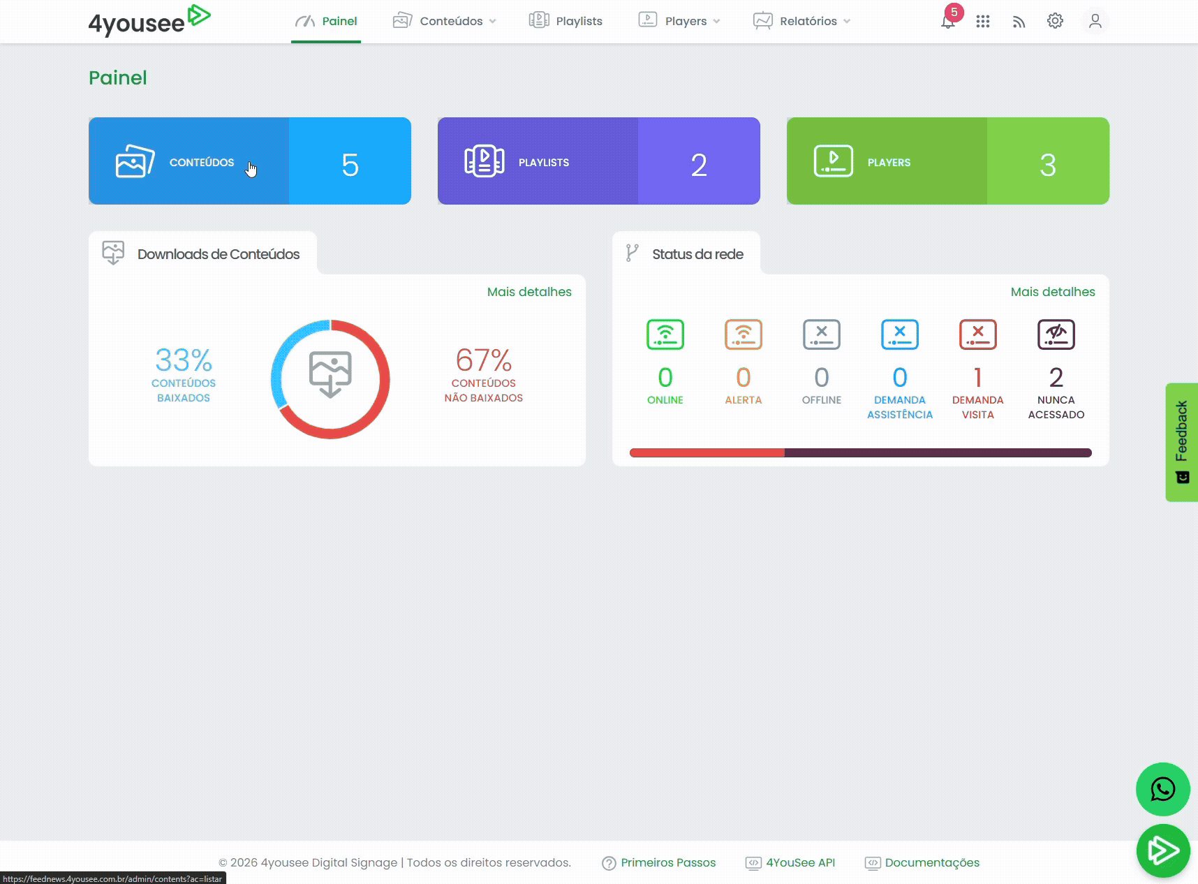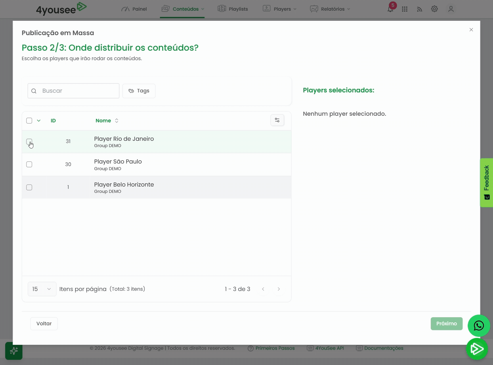 Os conteúdos são enviados automaticamente para todos os players selecionados.