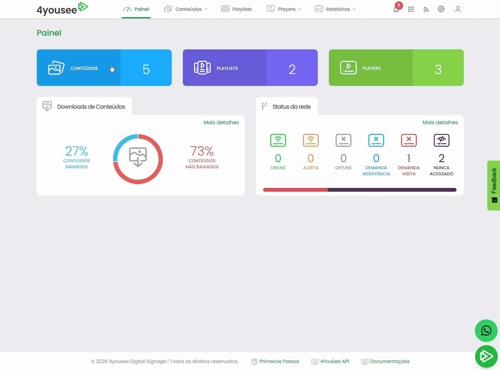 - Lista de conteúdos publicados e players de destino.