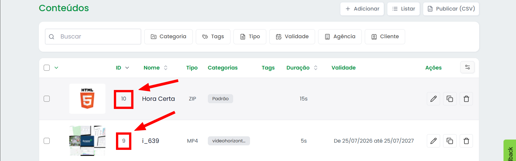 - Coluna 1:ID do conteúdo.