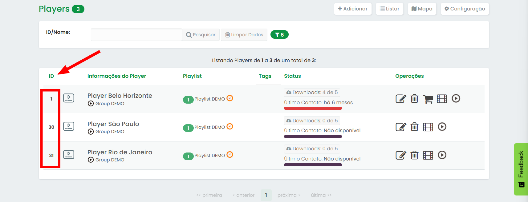 - Playlists Compartilhadas: Se múltiplos players utilizam a mesma playlist, o conteúdo publicado ficará visível em todos eles. Para evitar isso, utilize playlists exclusivas por player.